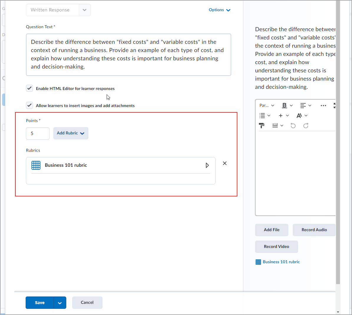 For more information on creating rubrics see, Create rubrics.