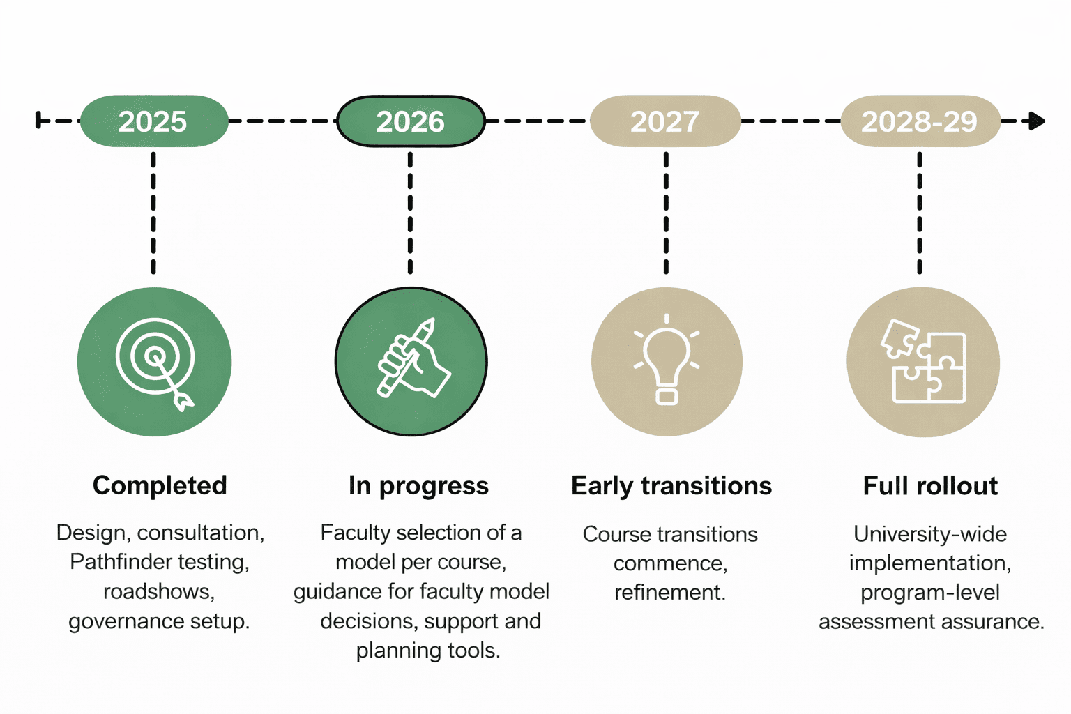 This update highlights strong progress across the MEA initiative, including extensive staff engagement through roadshows and CAEN workshops, early testing of the models through Pathfinder courses, and continued development of the MEA business case. It also outlines the growing focus on AI in assessment and what’s coming next as the models move toward refinement and broader consultation.