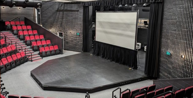 Our versatile spaces include professional lighting and acoustics, a bar area for pre-show gatherings and backstage areas such as dressing rooms, bathrooms, a kitchen/green room and a loading dock.